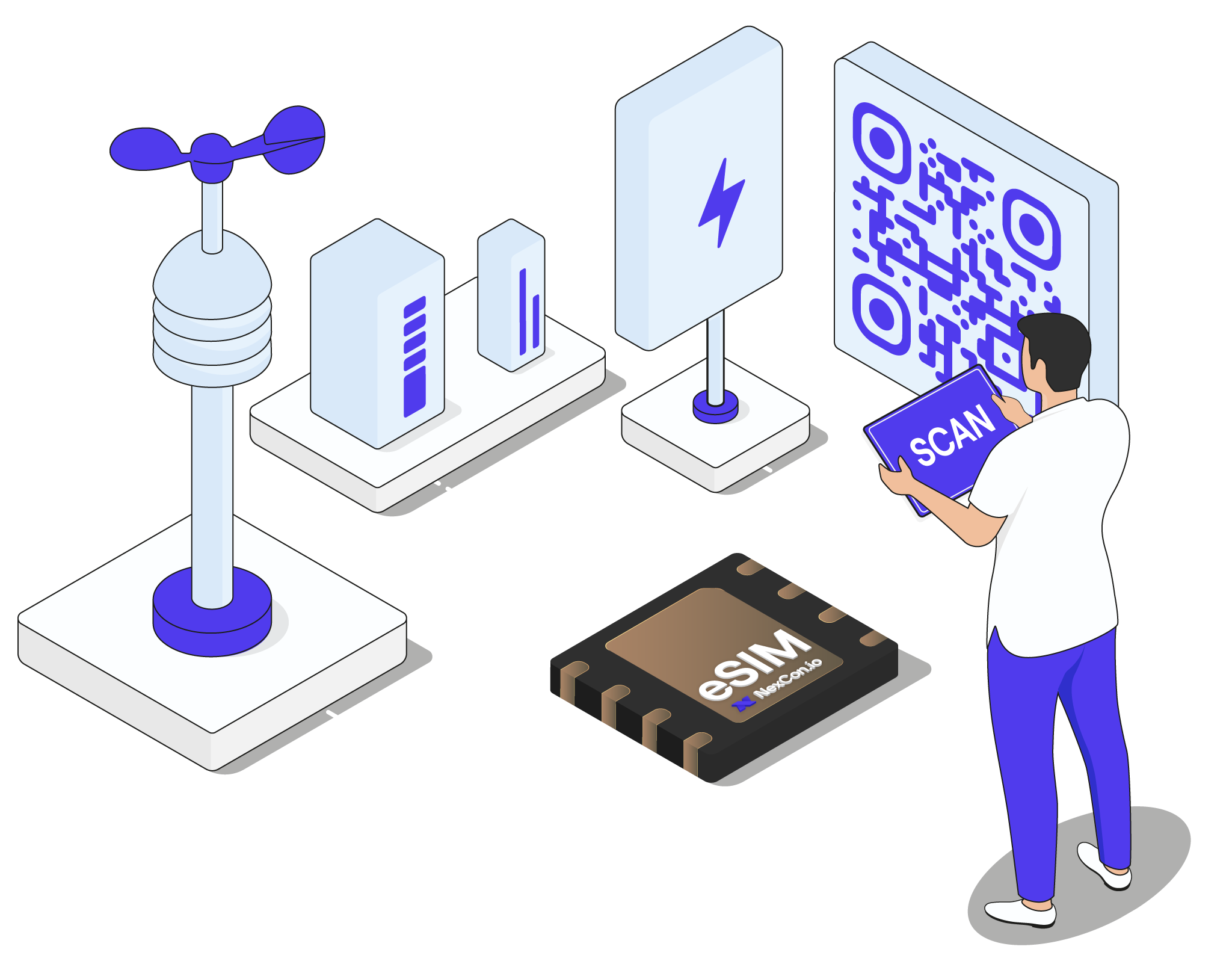 Du kan som NexCon.io kunde købe eSIMs, som giver mulighed for at forbinde enheder verden over på en smart, sikker og fleksibel måde.